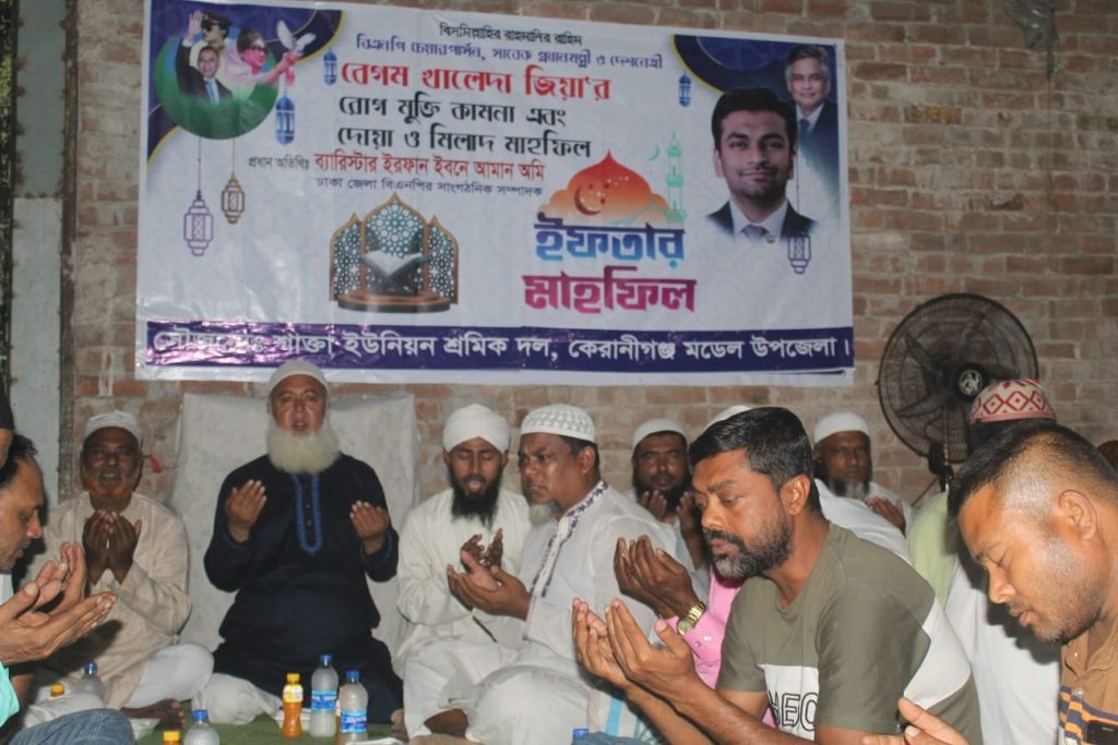 কেরানীগঞ্জে মডেল উপজেলায় বাংলাদেশ জাতীয়তাবাদী শ্রমিক দলের শাক্তা ইউনিয়ন শাখায় সাবেক প্রধান মন্ত্রী ও জননেত্রী বেগম খালেদা জিয়ার রোগ মুক্তির জন্য দোয়া এবং ইফতার মাহফিল অনুষ্ঠিত হয়েছে।